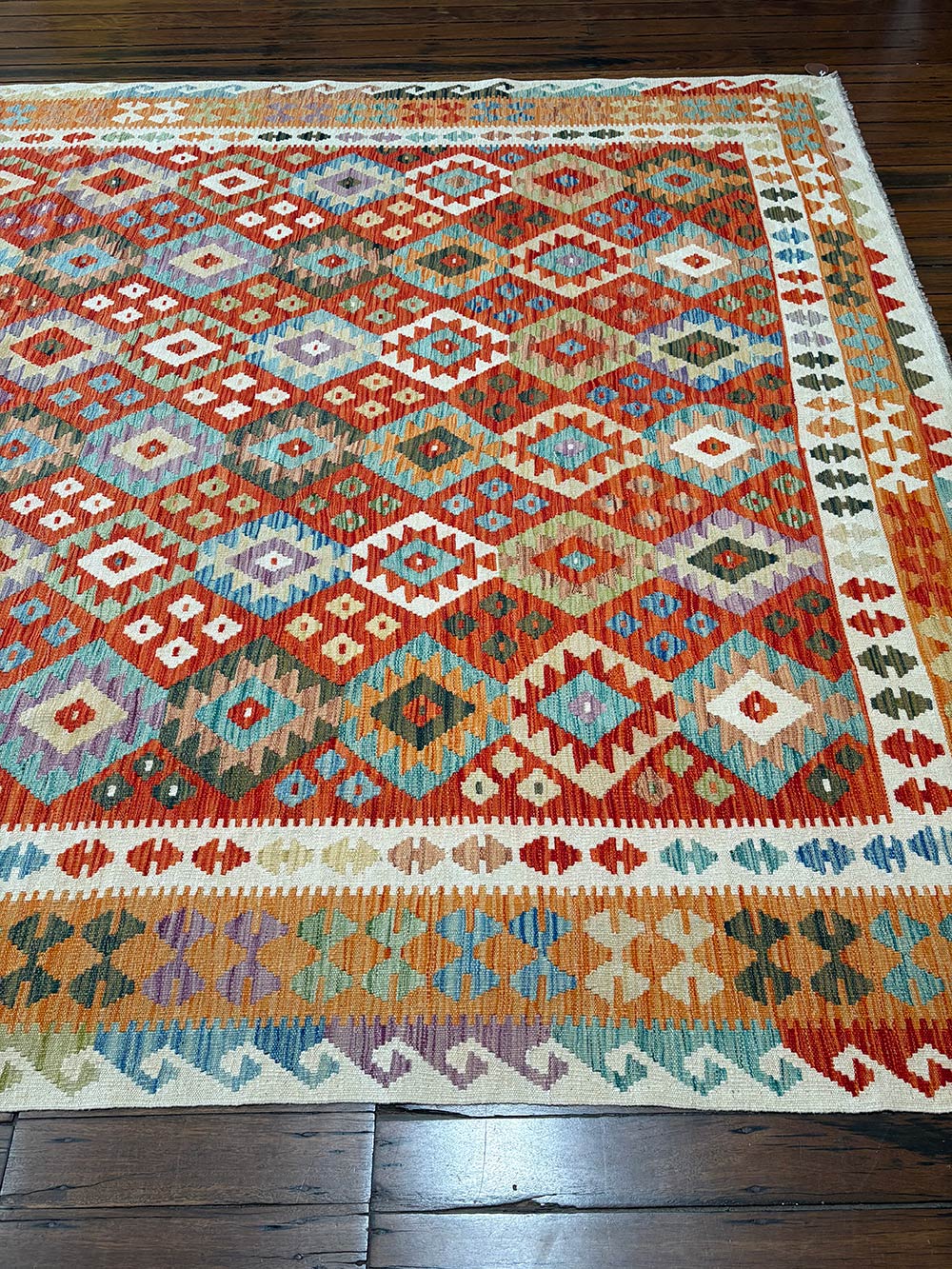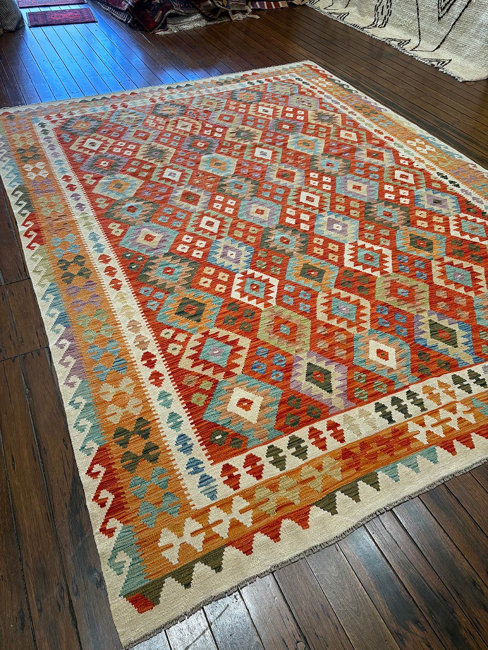 The best Afghan Maimana Kelim Rugs possess this balance: earthy but lively, structured but spontaneous. It is a harmony you don’t tire of.