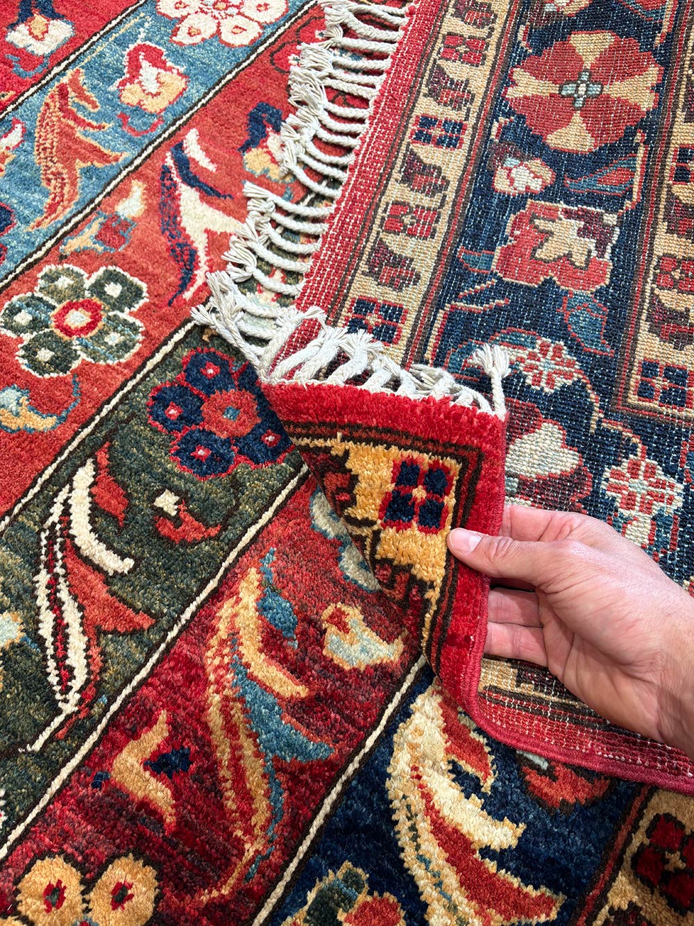 Woven on horizontal ground looms in family homes, these rugs maintain the village character and artisanal irregularity that makes them so appealing. Their texture is soft yet strong, the knots are firm, and the patterns are deeply expressive. The Afghan Shawl Design Rug is neither mass-produced nor replicated—it is made rug by rug, hand by hand. Each one is slightly different, reflecting the weaver’s interpretation of the shawl pattern, sometimes from memory, sometimes from a family heirloom.
