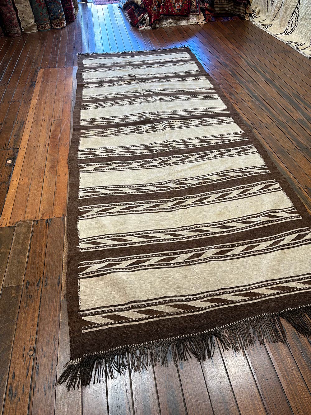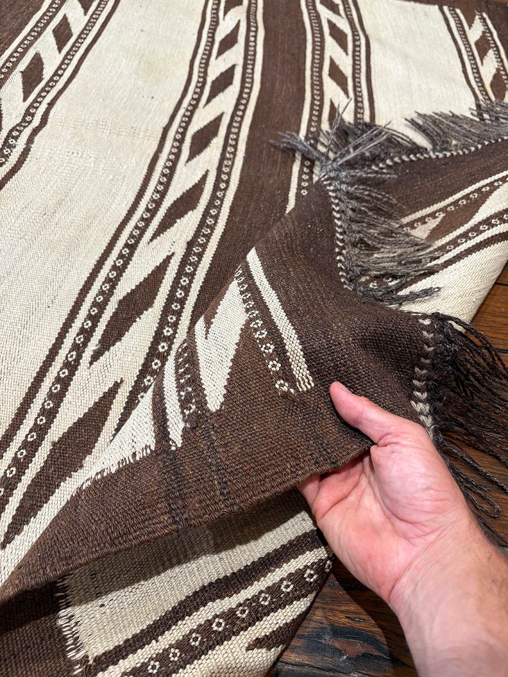 Not made for Western consumption or for any sale, this vernacular weaving is a rare artifact of an extinct lifestyle.