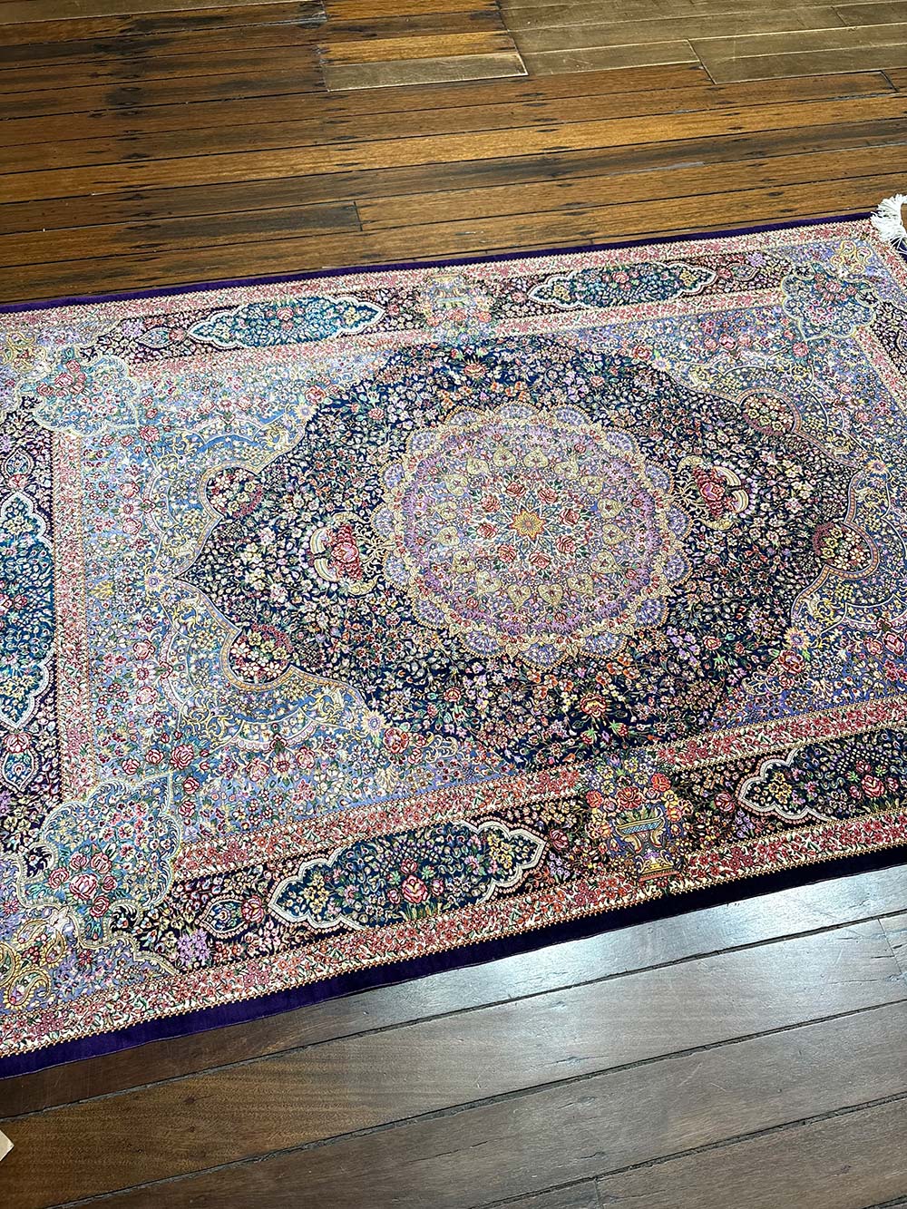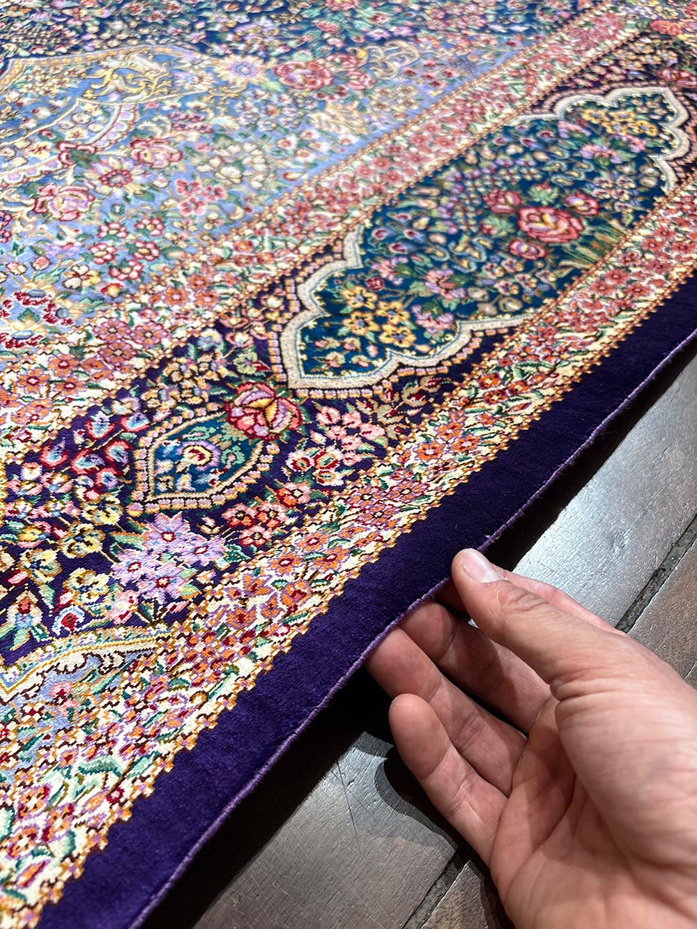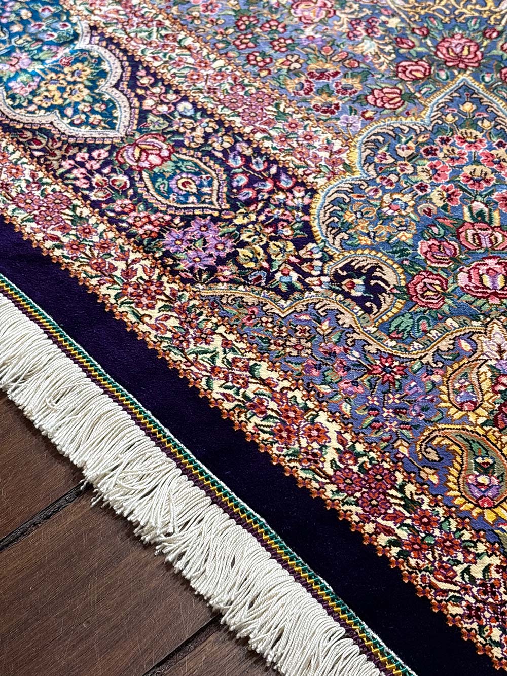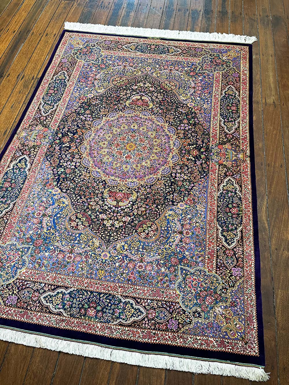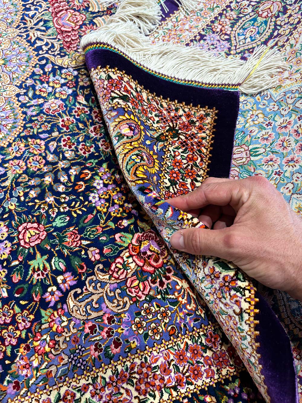 Collectors who seek a Qum Silk Masterpiece Rug value them for more than status. They value them for the technical intelligence, the aesthetic balance and the extraordinary craftsmanship that is almost impossible to reproduce today. Machine production can imitate design but it cannot imitate spirit. A true Qum silk carpet holds the presence of its weaver, the patience of its making and the cultural depth of the Persian imagination.